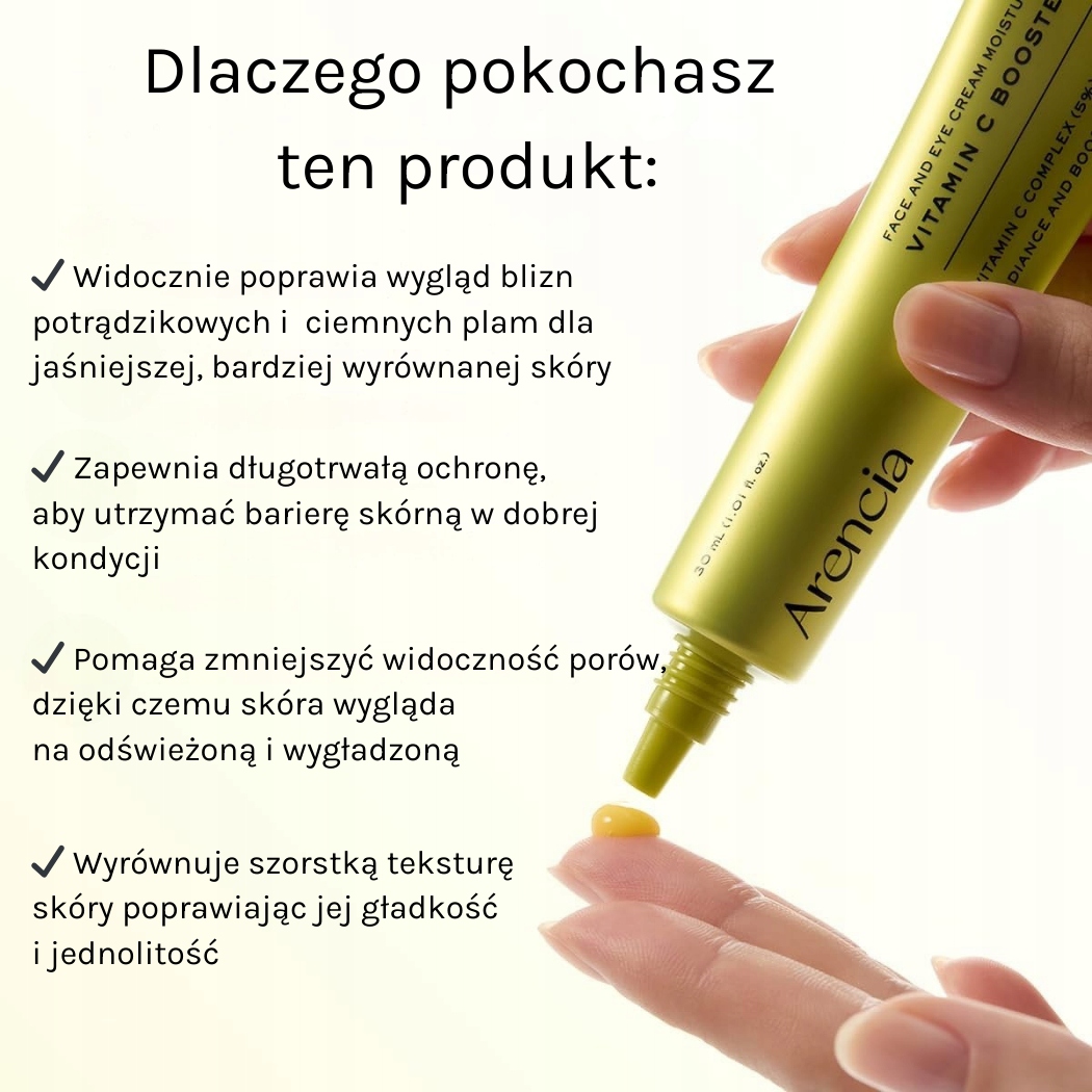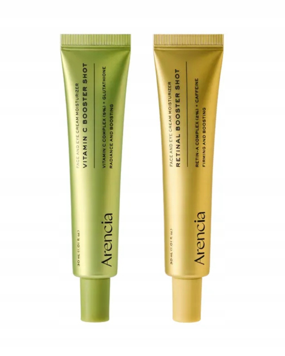 Zestaw łączy Arencia Vitamin C Booster Serum na dzień i Arencia Retinal Booster Shot na noc, tworząc kompletną pielęgnację dla skóry zmęczonej, matowej i pozbawionej blasku.