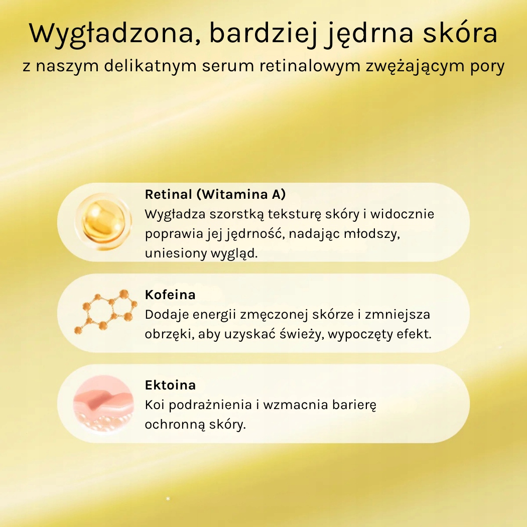 • wspomaga działanie przeciwzmarszczkowe retinalu