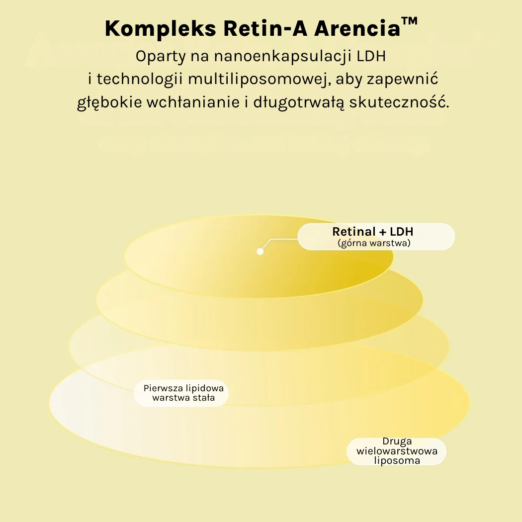 • Kompleks lipidów bariery (ceramid NP, cholesterol, kwasy tłuszczowe) – wzmacnia barierę, zwiększa komfort i zapobiega podrażnieniom przy stosowaniu retinalu.