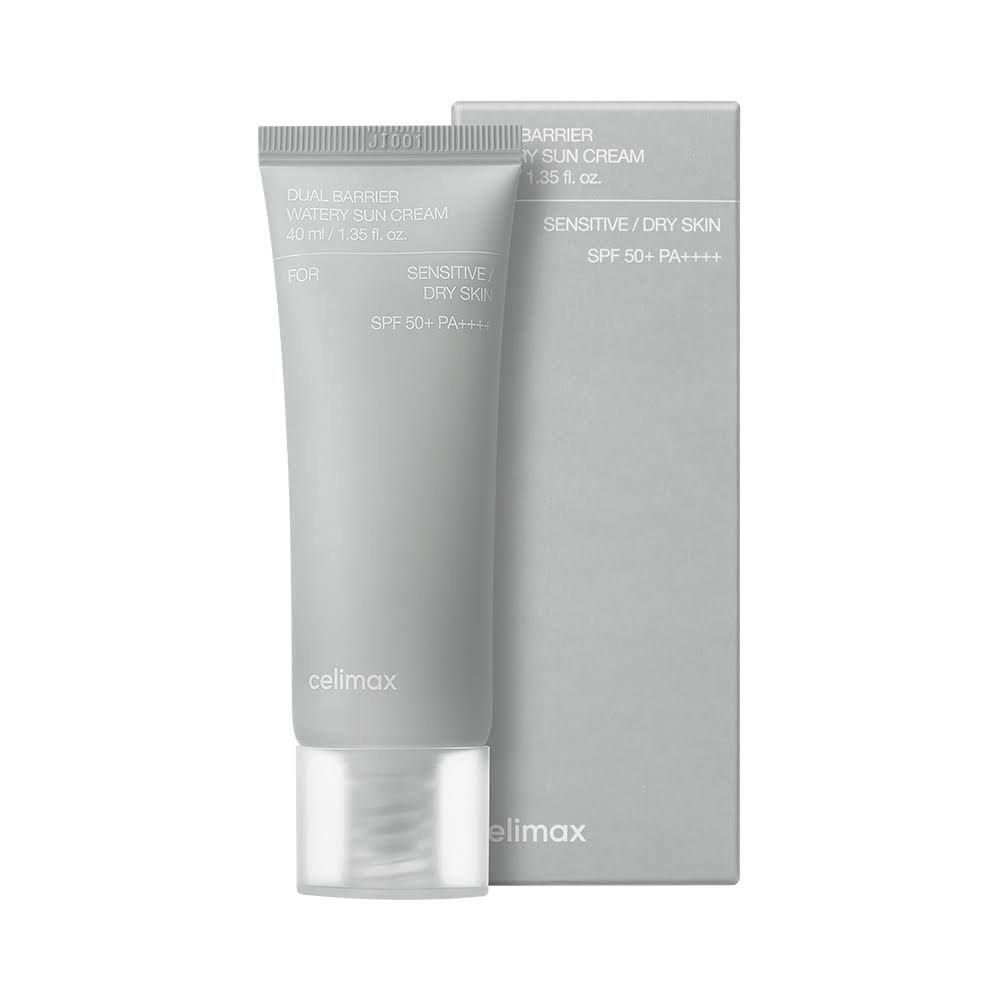 Celimax Dual Barrier Watery Sun Cream to lekki, beztłuszczowy krem przeciwsłoneczny opracowany z myślą o skórze wrażliwej, podrażnionej i odwodnionej. Zapewnia wysoką ochronę przed UVA i UVB (SPF 50+ PA++++) oraz wzmacnia naturalną barierę skóry dzięki kompleksowi ceramidów i kojących ekstraktów roślinnych.